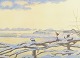 Litografi af Lars Swane 1990 - Vinterlandskab.