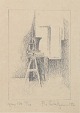Radering af C. V. Stubbe Teglbjærg - Pige ved køkkendør 1932 - Opus 150.