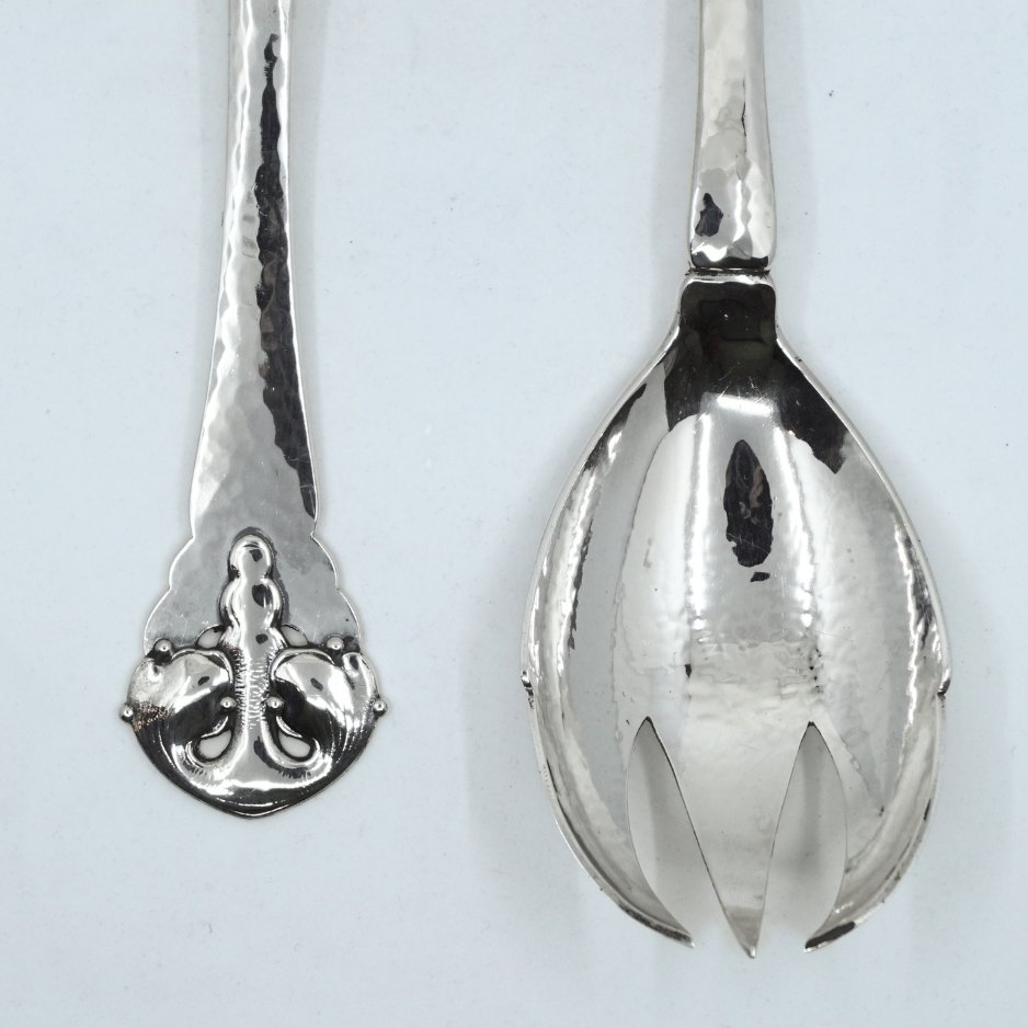Grann & Laglye; Stort skønvirke salatsæt af hamret sølv.