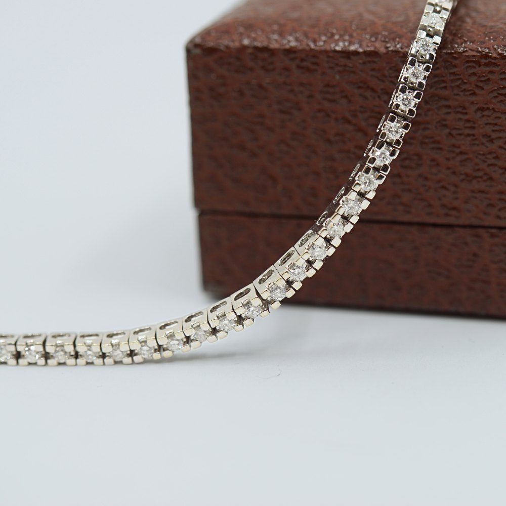 Tennisarmbånd af 18 kt. hvidguld prydet med brillanter. Brillanter i alt ca. 1,53 ct. Wesselton - SI. Monteret med kasselås samt en sikkerhedslås. Diamantarmbånd.