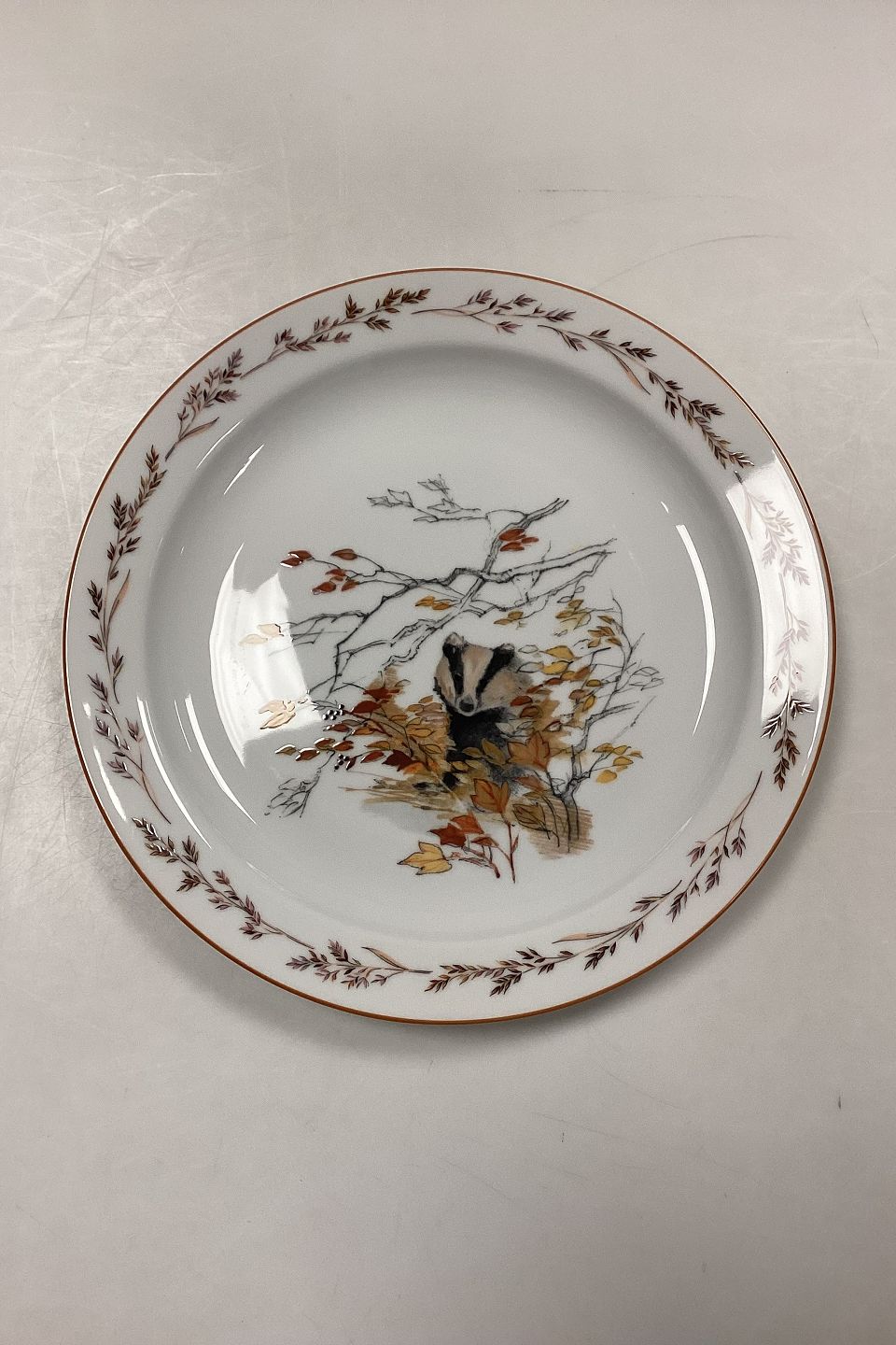 Mads Stage Jagtstellet Middagstallerken. Producent: Seltmann Weiden. Motiv: Grævling.