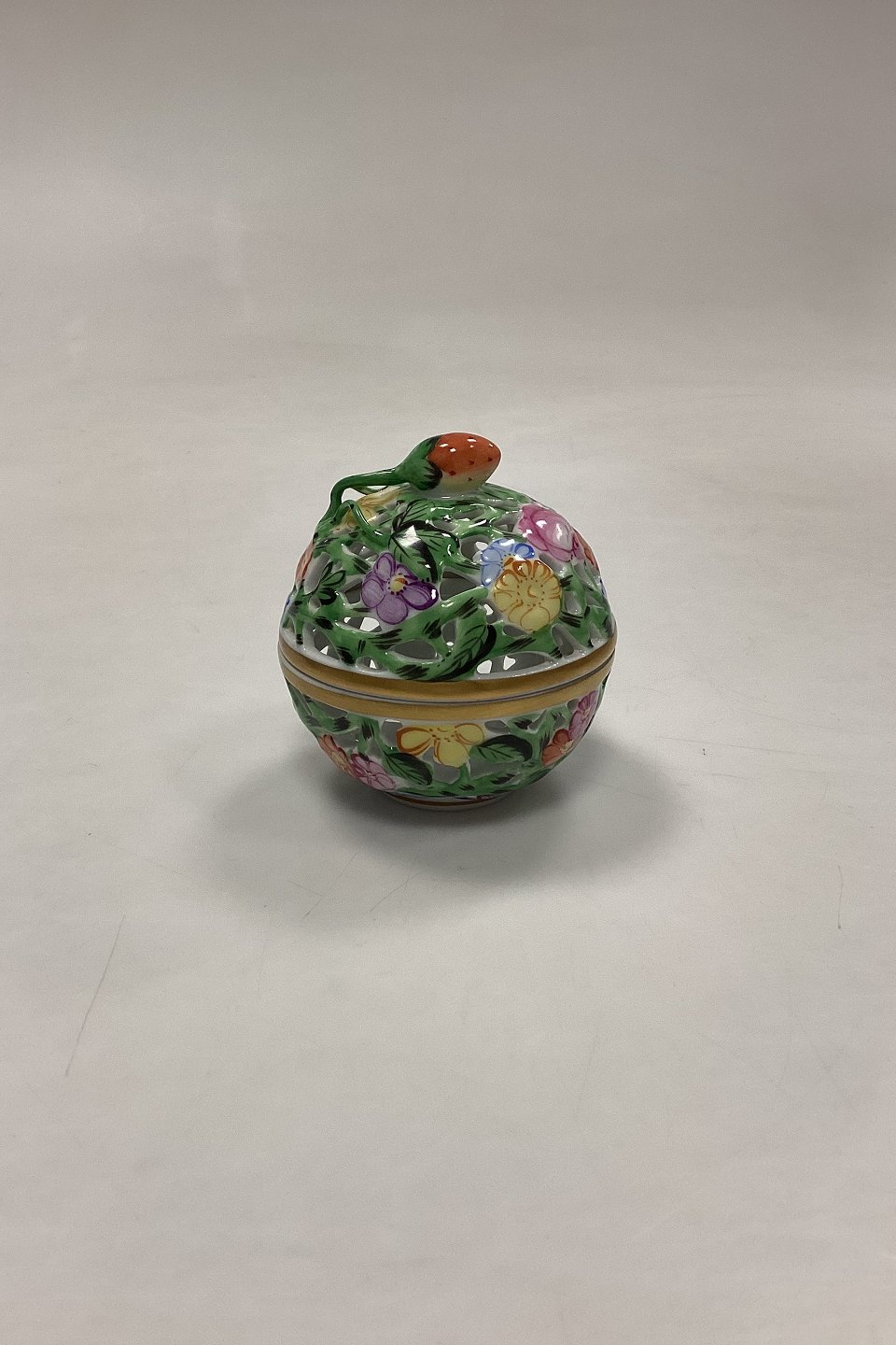 Herend Ungarn Bonbonniere, gennembrudt No. 6214. Multifarvet med blomster.