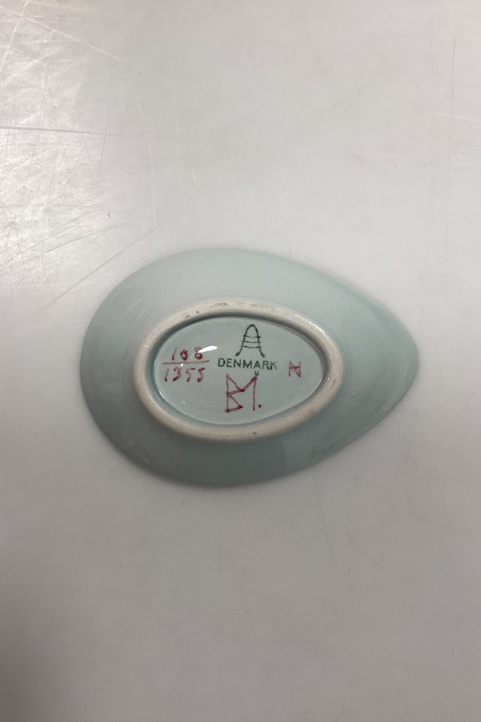 Aluminia Fajance Tenera Kuvertskål No. 108/1355. Motiv: Fugl i gul og rosa. Designet af Beth Breyen.