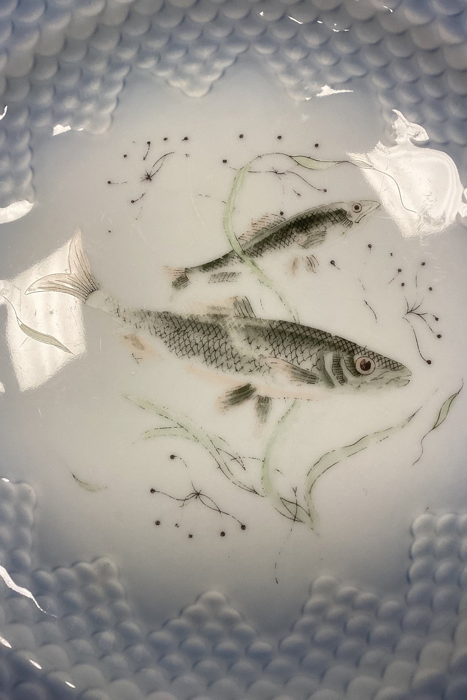 Bing og Grøndahl Blå Tone Fisketallerken Motiv 1 Sild No. 716 - SKÅRET/SLIDT