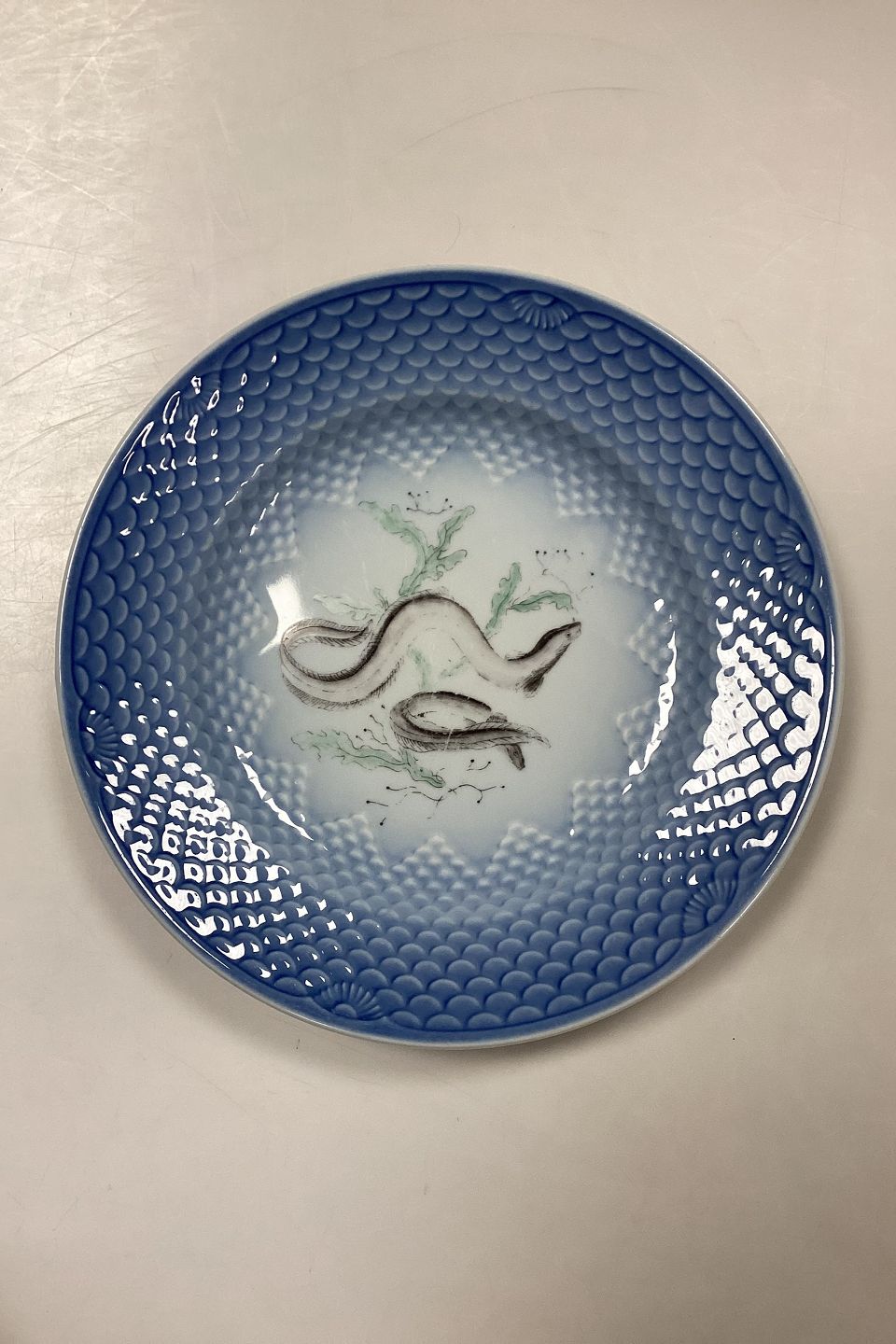 Bing og Grøndahl Blå Tone Fisketallerken Motiv 8 Aal No. 716 - SKÅRET/SLIDT