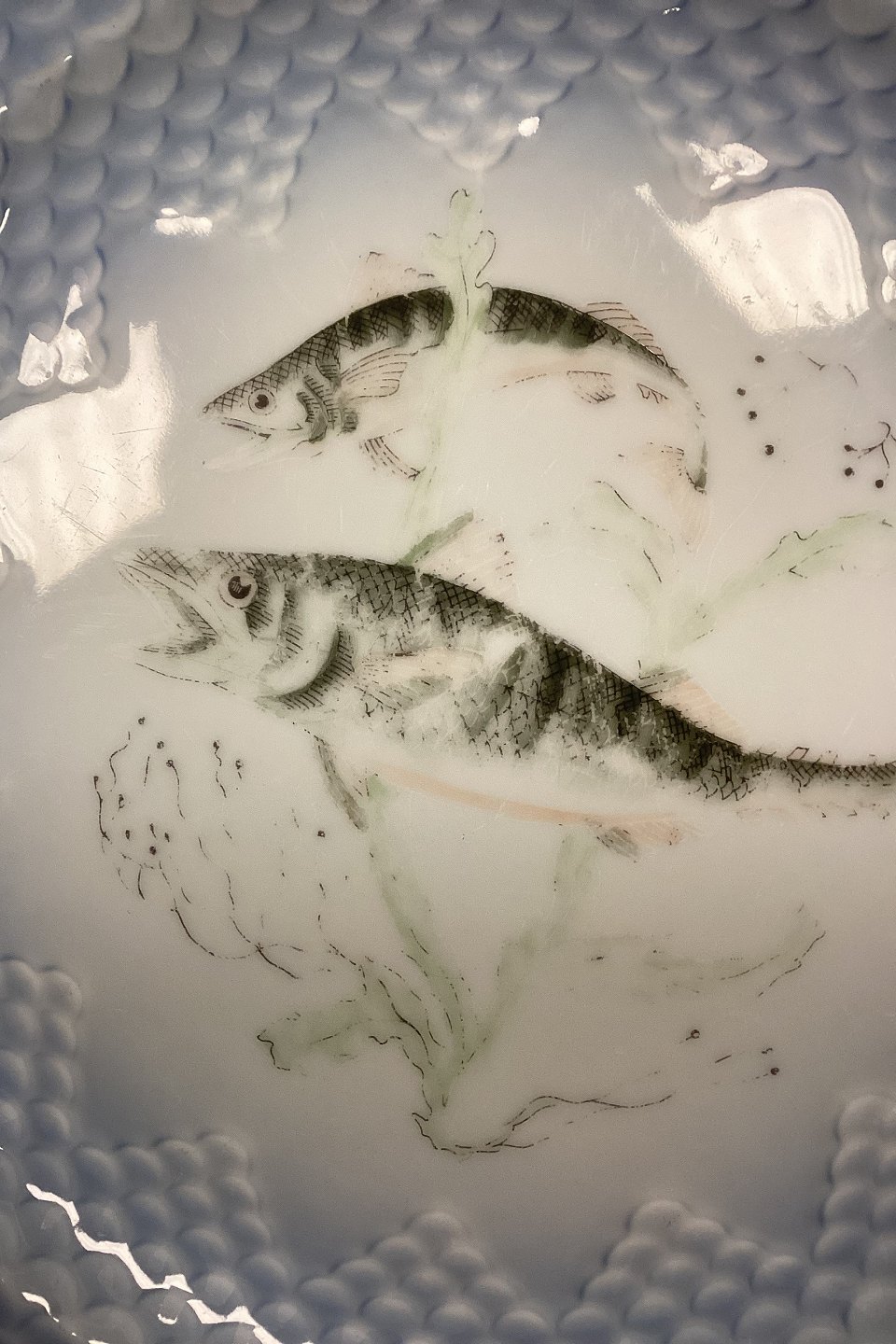 Bing og Grøndahl Blå Tone Fisketallerken Motiv 10 Makrel No. 716 - SKÅRET/SLIDT
