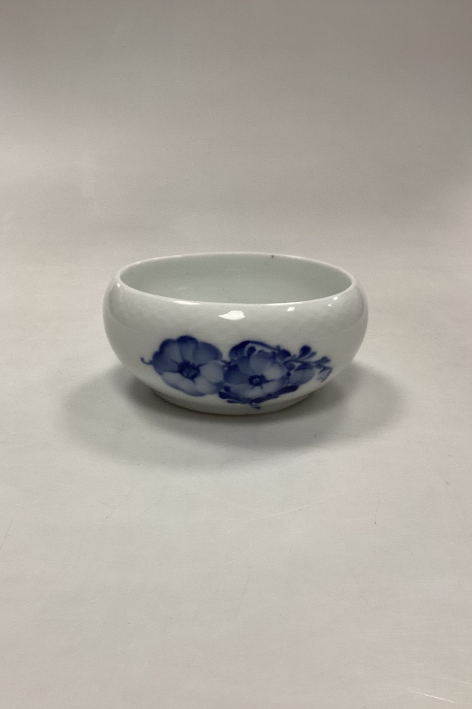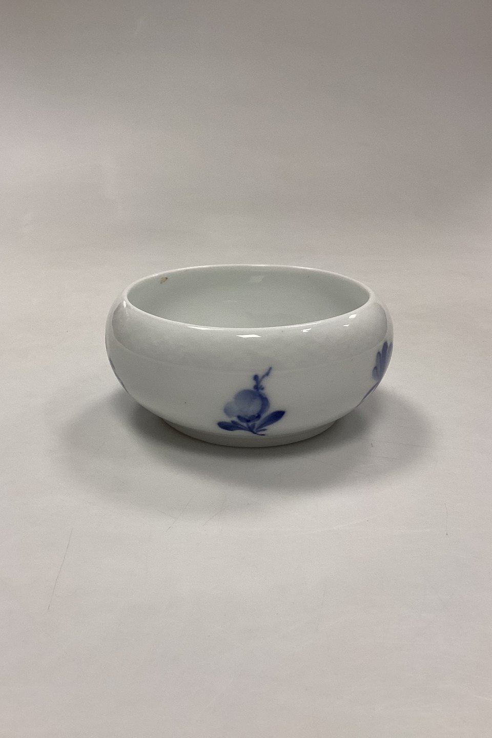Royal Copenhagen Blå Blomst Flettet Skylleskål No. 8224. Måler 13 cm x 13,5 cm / 5,12 in. x 5,31 in. pga skævhed i kanten. 2. Sortering med små sorte brændingsnister og lille glasurfejl indvendig øverst under kanten, se foto.
