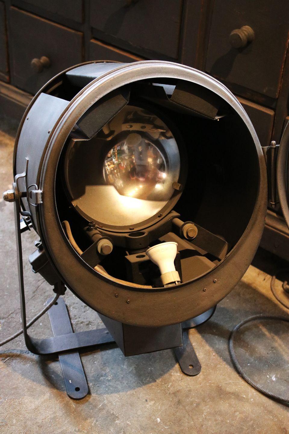 Gammel Fransk projektør af mærket "Cremer-Paris" fra 40érne i afpudset metal med super fin mørk patina.