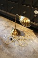 Old table lamp in brass with clam shaped lampshade.