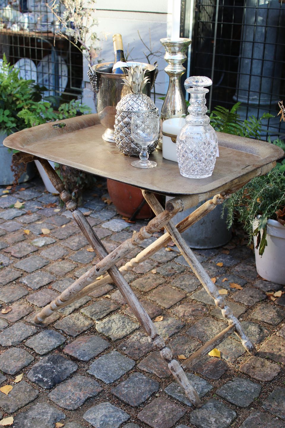 Gammelt bakke bord med understel i træ med en rigtig fin patina og
