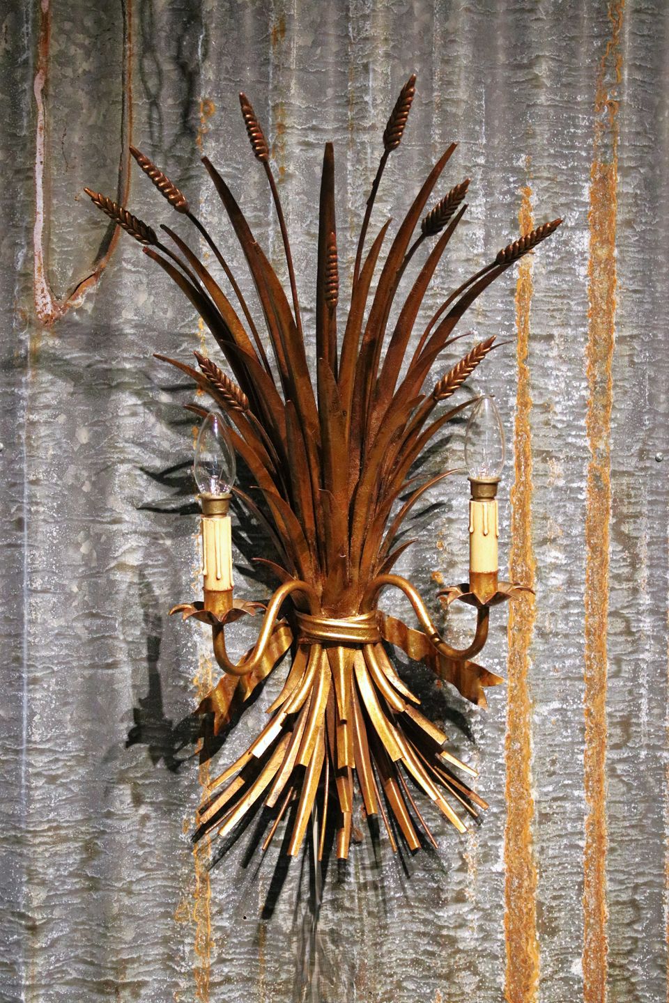 Large gilded Hans Kögl metal wall lamp (Bouquet of Corn Sheaves)