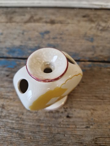 Aluminia gult julehjerte 1. sortering Højde 7,5 cm. Fremstår med små krakeleringer samt en reparation på kanten - se billed