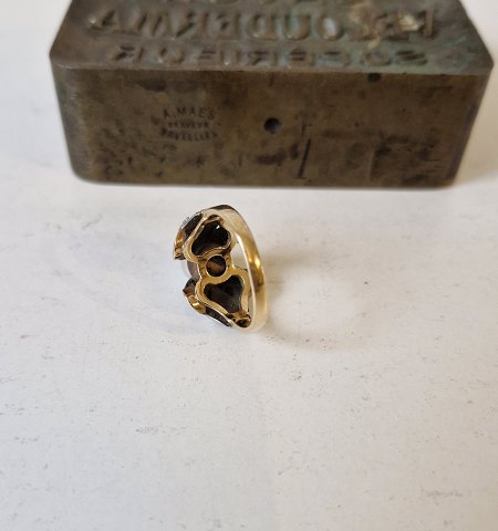 Vintage ring in 14 kt red and white gold with beautiful akoya pearl. The ring is not hallmarked. It is tested for 18 kt. Ring size 49