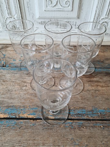 Sæt på 6 franske vinglas med fine slibninger i form af blade