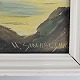 Oliemaleri på lærred i hvidmalet træramme. Havmaleri med et grønlandsk inspireret motiv af en kajaksejler