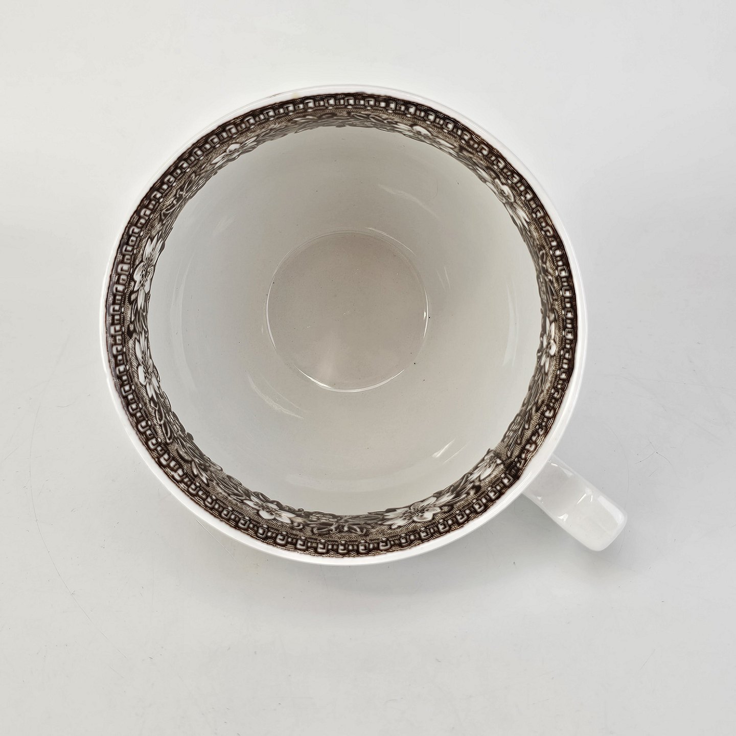 Stor kop og underkop i engelsk fajance fra stellet Coaching Taverns 1828