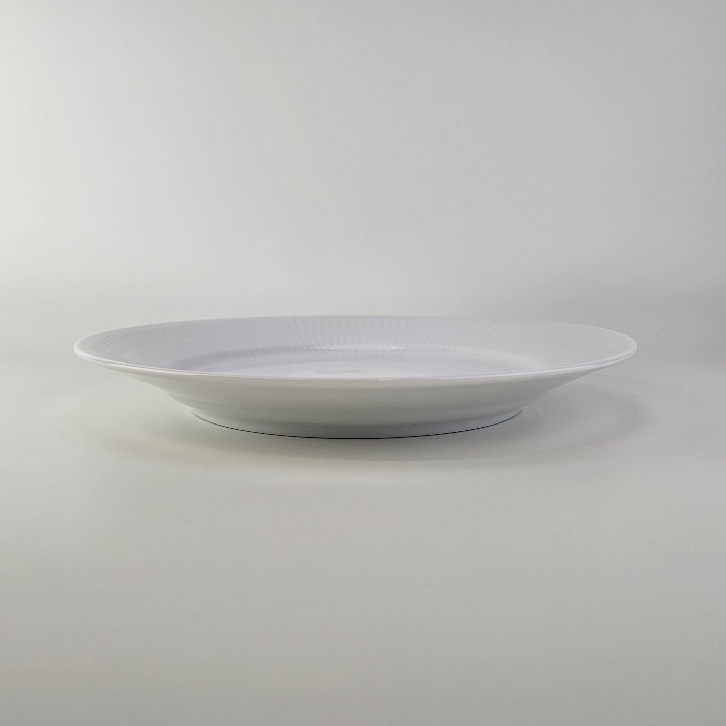 Flad frokosttallerken i kongeligt porcelæn fra stellet Hvid Riflet