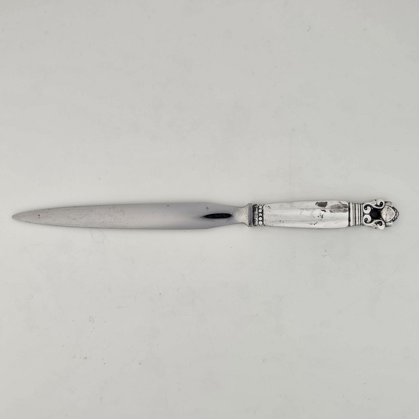 Kongemønster brevåbner med skæfte af sterling sølv 925 og knivsæg af rustfrit stål