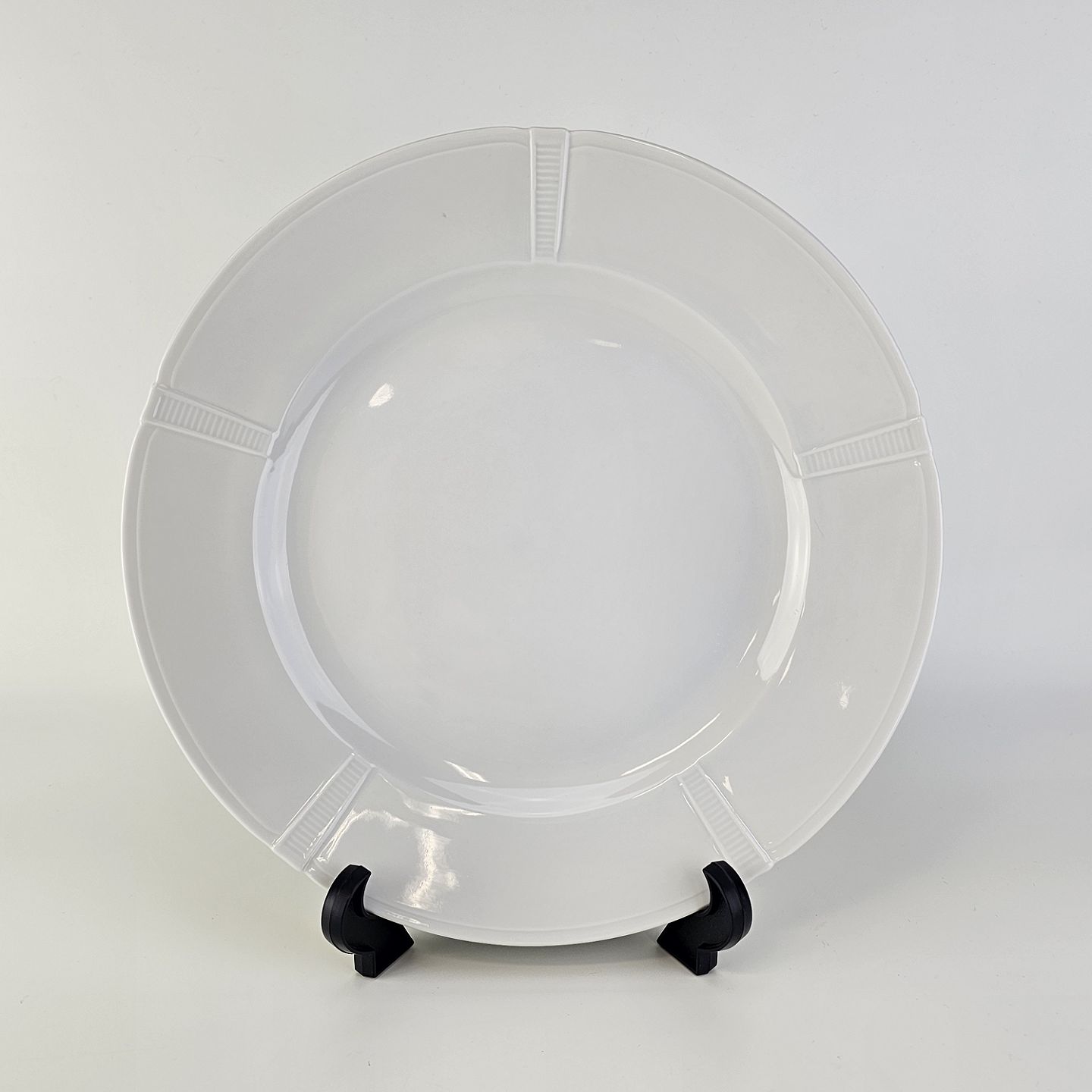 Flad middagstallerken i hvidt porcelæn fra stellet Rosenborg