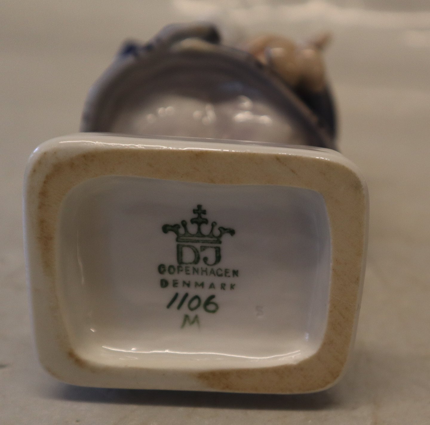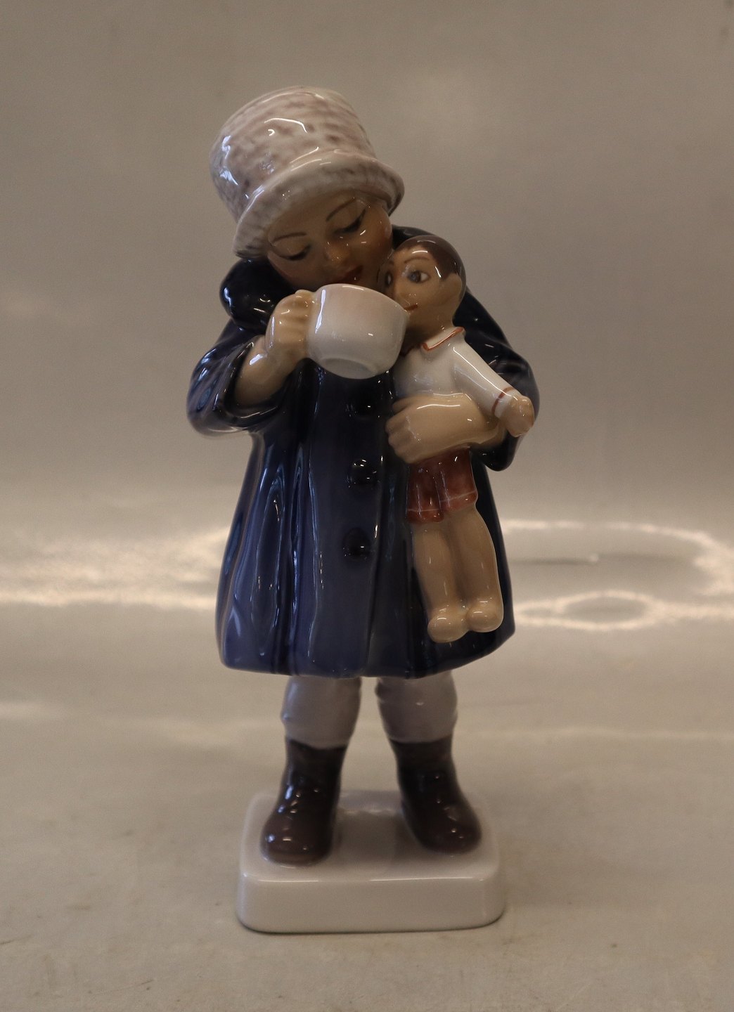 Blue version Dahl Jensen 1106 Girl with Doll (DJ) 17.5 cm Marked with the Royal Crown and DJ Copenhagen. . In nice and mint condition Dahl Jensen Worked first for Bing & Groendahl B&G from 1897