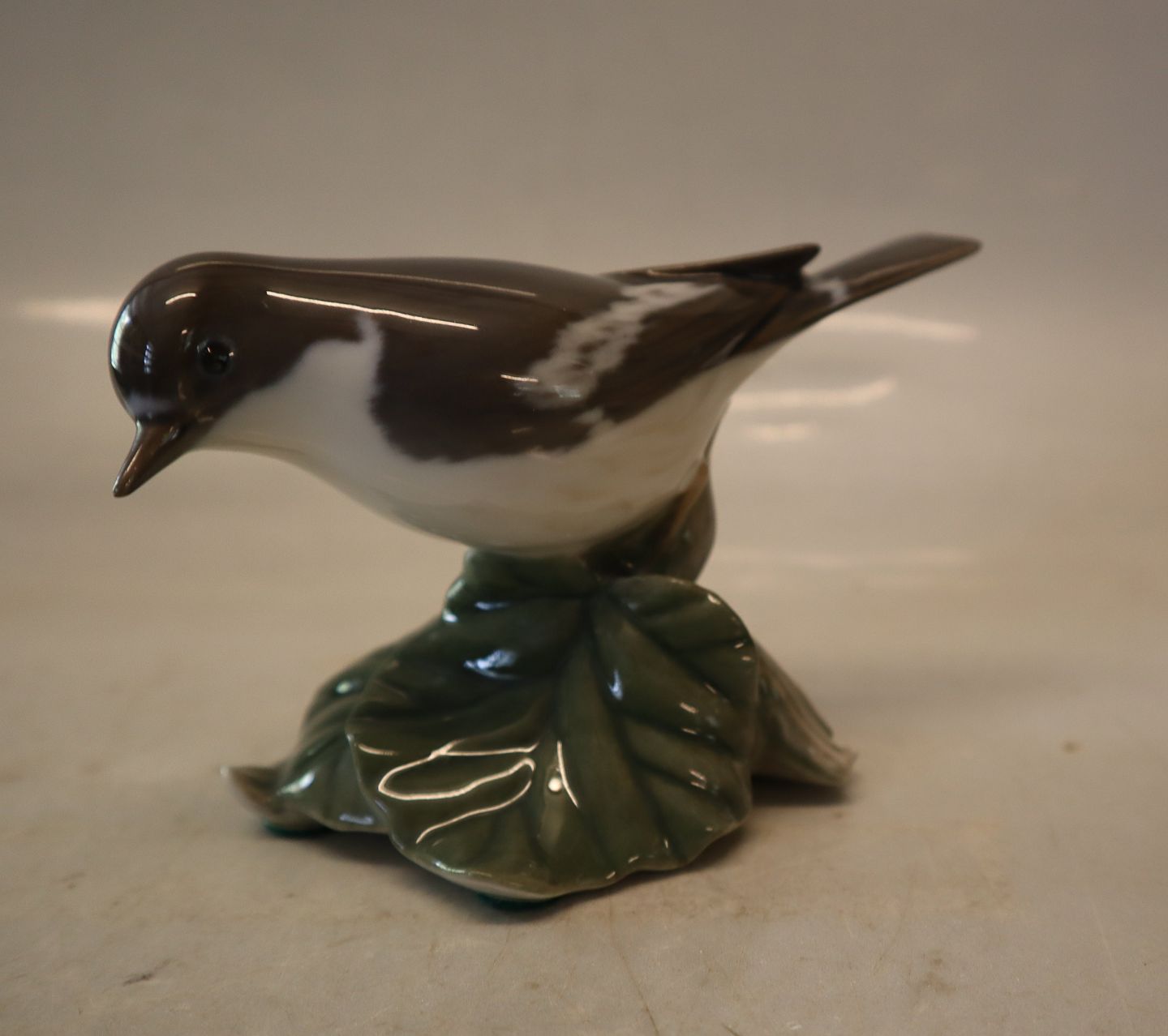 Beskrivelse: 2144 Kgl. Fluesnapper 8 x 13 cm Platten Hallermundt 1920 Fuglefigur i Porcelæn fra Royal Copenhagen I hel og fin stand