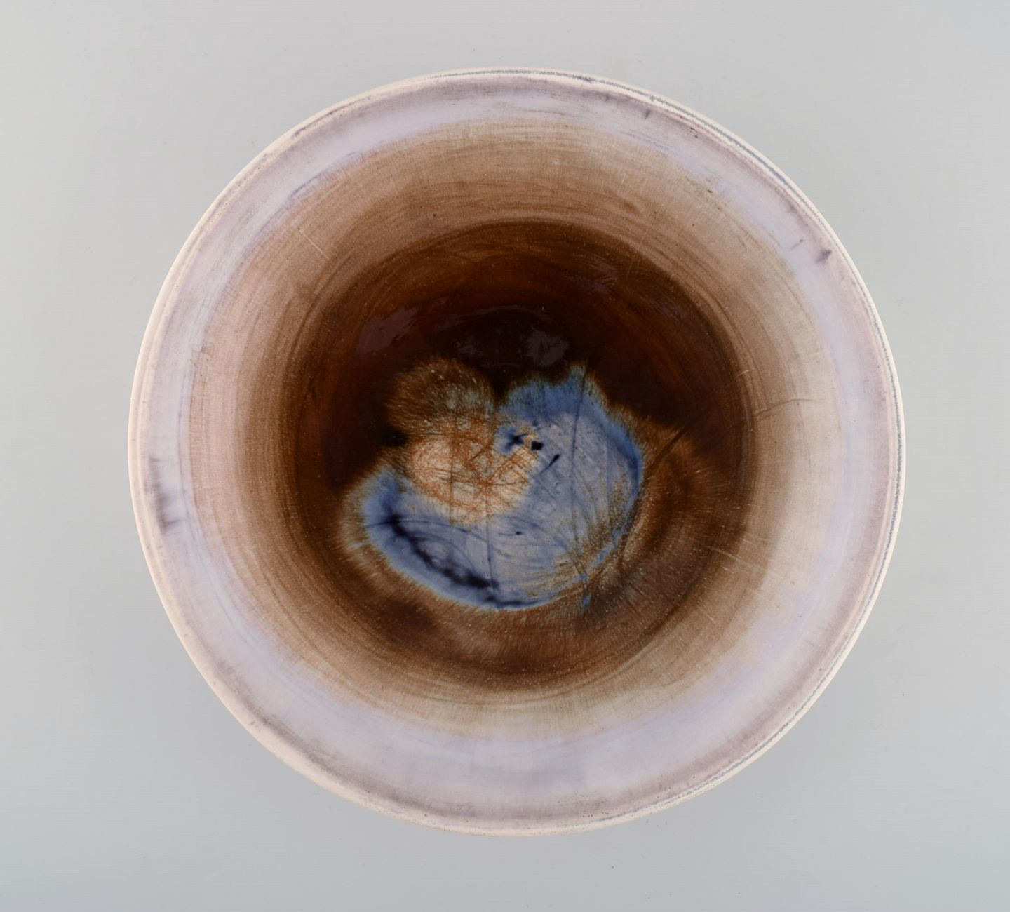 Georges Jouve (1910-1964), France. Unique bowl in glazed stoneware. Beautiful glaze in blue and light earth tones. Mid-20th century.
