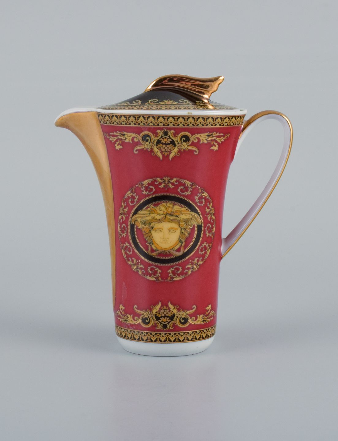 Gianni Versace for Rosenthal, porcelain miniature jug. "Medusa". In perfect condition. 2000s. Marked. Original gift box included. Dimensions: H 10.0 x D 8.5 including handle and spout.