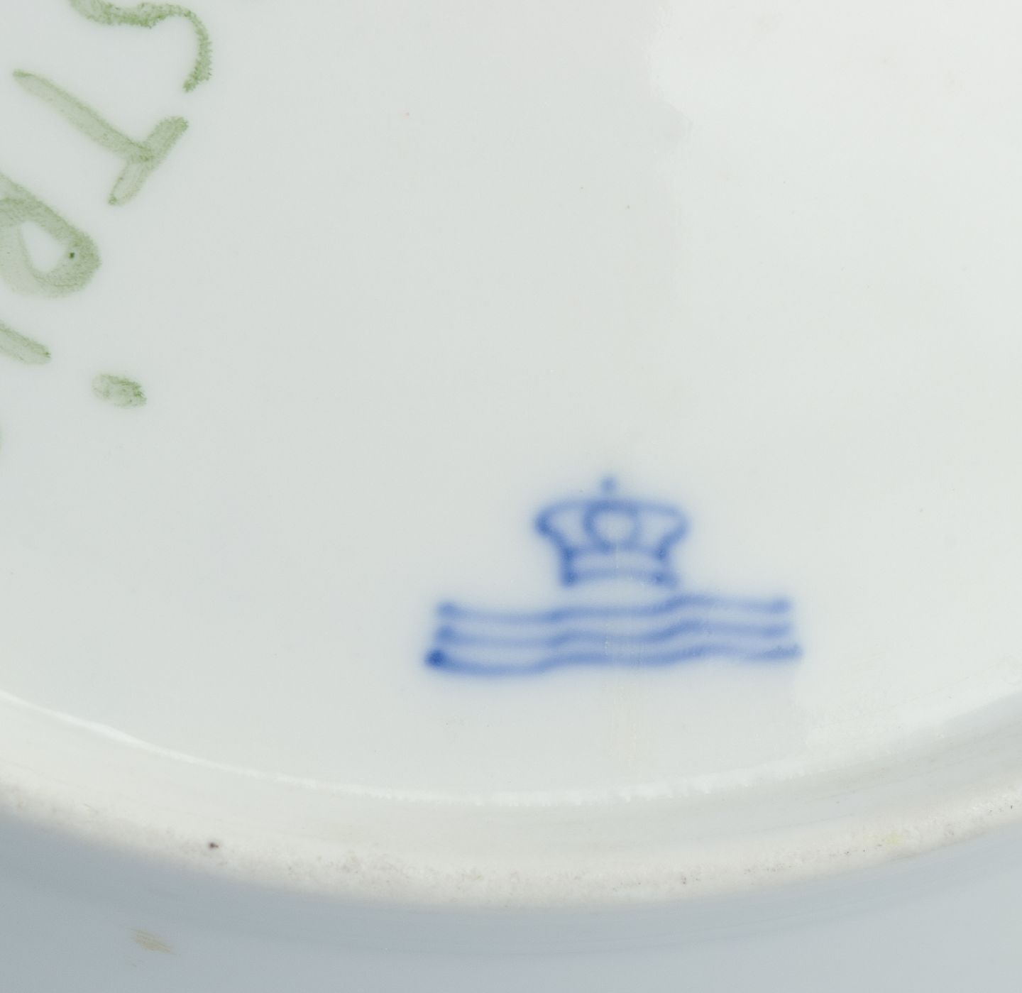 Middagstallerken i håndmalet porcelæn med blomster og gulddekoration. Hjemmedekoreret.
