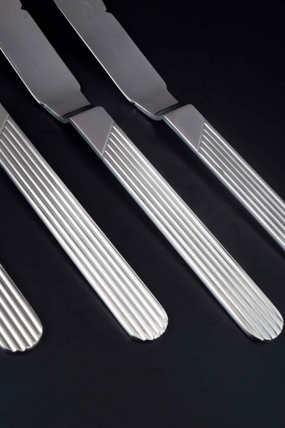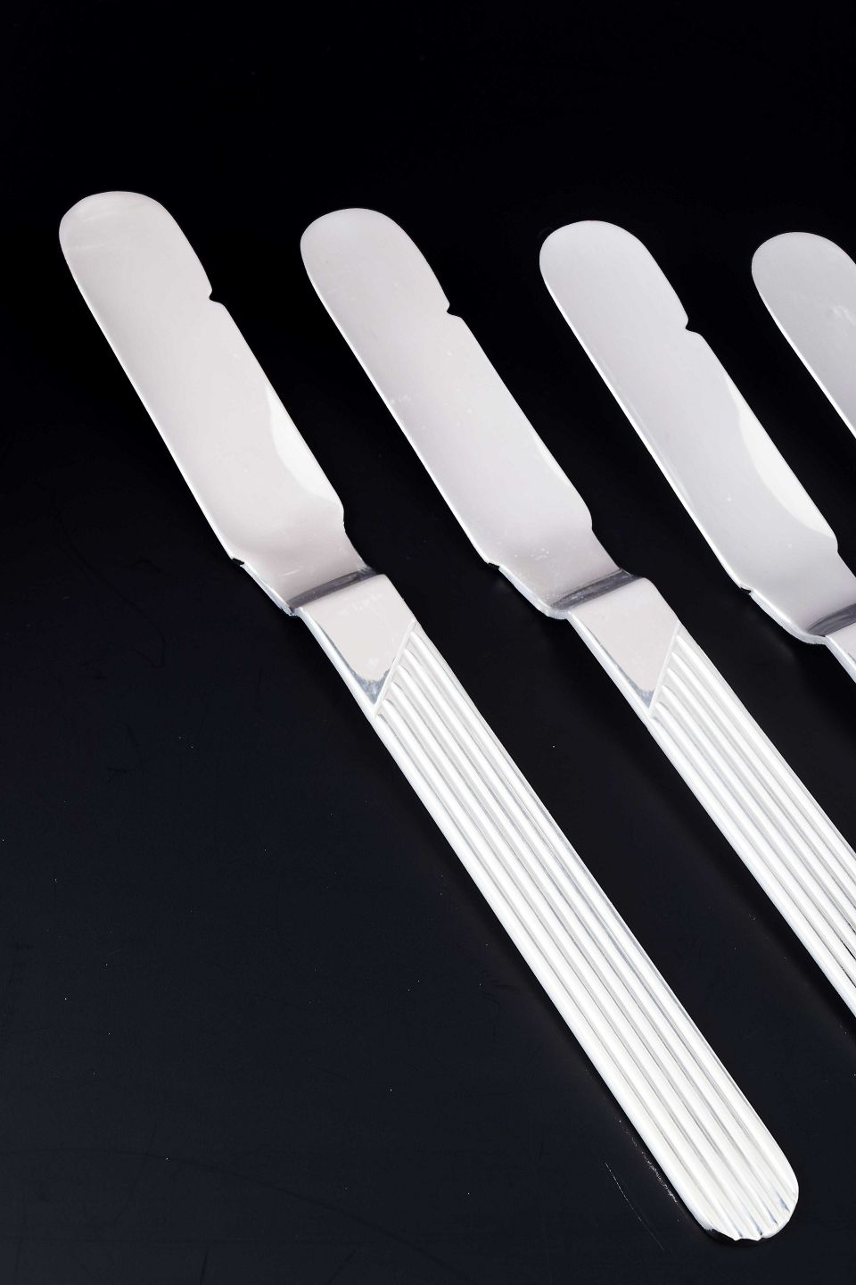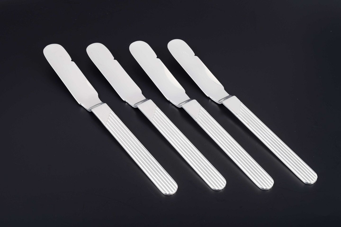 Sæt med 4 frokostknive i mønster med riflede linjer.