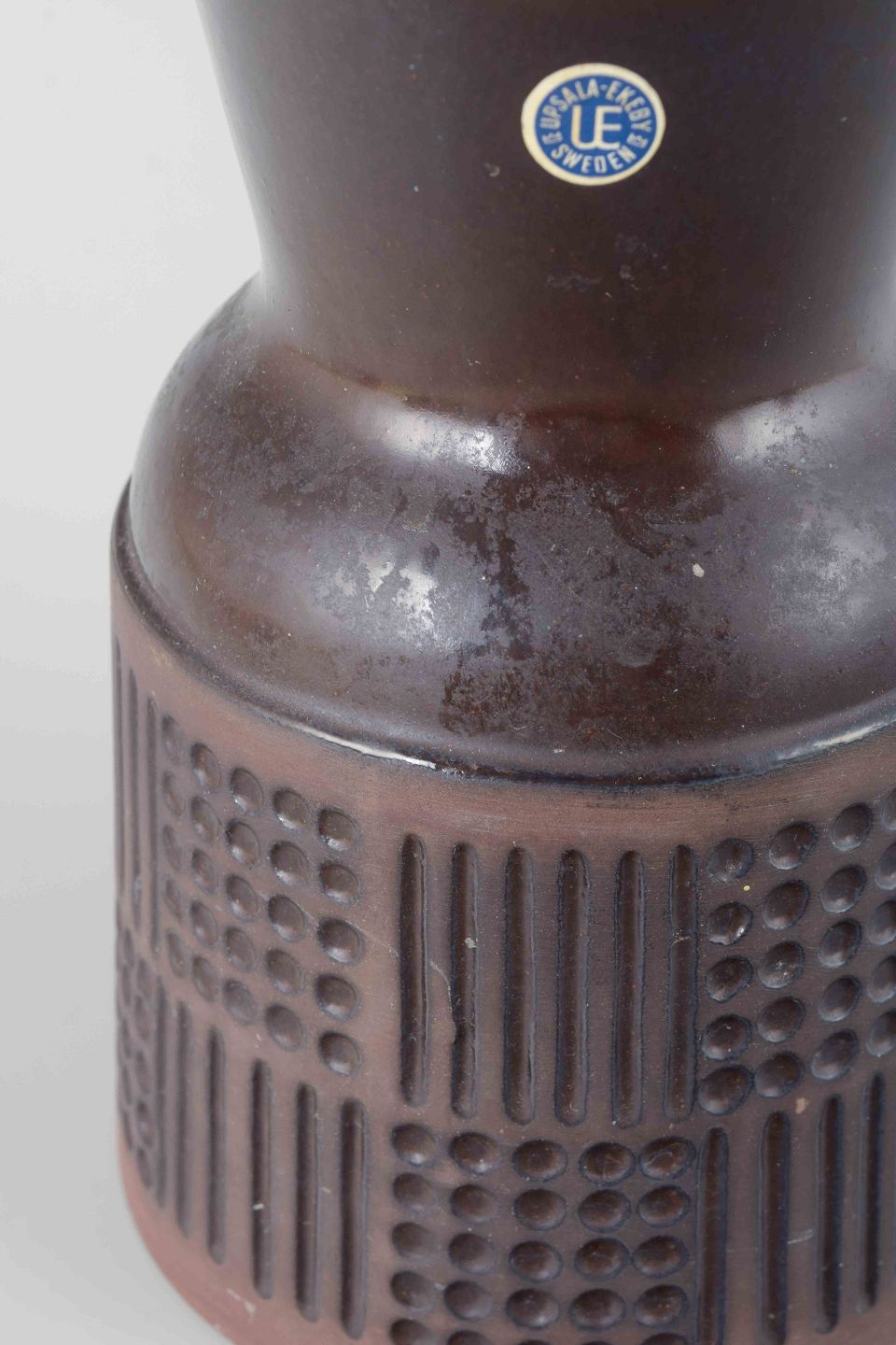 Mari Simmulson (1911–2000) was one of Upsala-Ekeby’s leading postwar designers. Her works combine functional shapes with decorative reliefs and distinctive glazes, often in warm earthy tones and organic patterns.