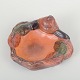 Dekorativ skål formet som et blad med en snegl på kanten. Glasur i grønne, brune og orange nuancer med naturlig overfladestruktur. Et klassisk naturinspireret arbejde fra Ipsens Enke, 1920’erne.