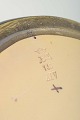 Dekorativ skål i form af tre sæler – to liggende og én siddende på kanten. Glasur i grønne og brunlige nuancer med naturlig overfladestruktur. Et klassisk figurativt arbejde fra Ipsens Enke, 1920’erne.