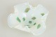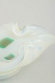 Organically shaped art glass bowl in hand-blown glass with an iridescent surface in opaline white and green tones. The flowing form and fused colour patches create a distinctive expression typical of Murano glass from the period.