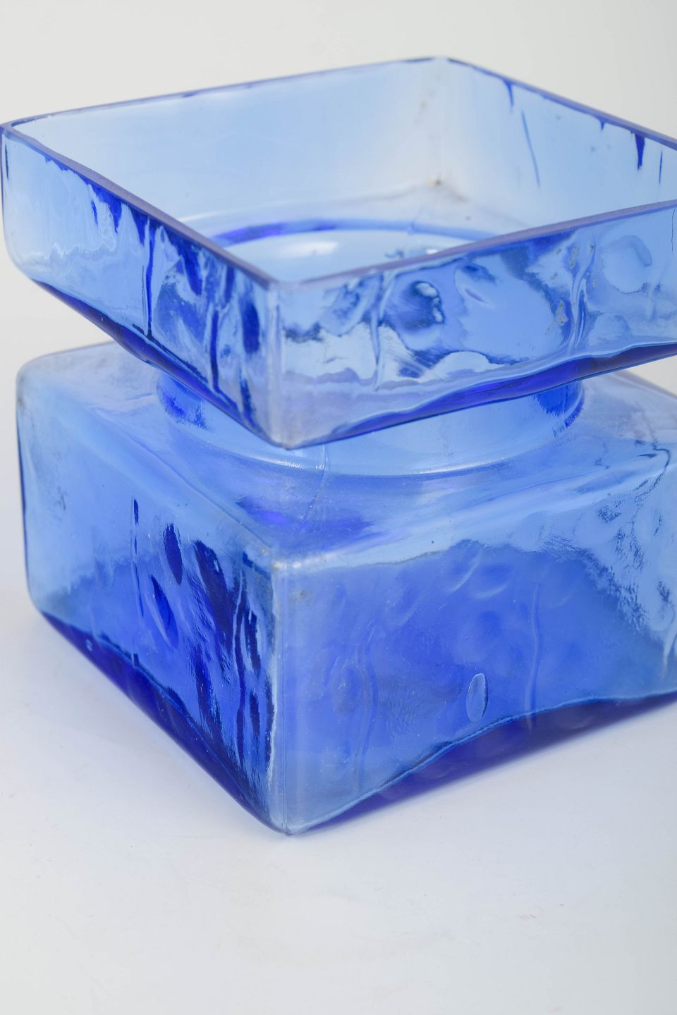 Mundblæst glasvase i klar blå farve fra den ikoniske ”Pala”-serie, kendetegnet ved sine geometriske modulformer og strukturerede overflade.