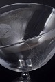 Elegant footed bowl featuring feather-like decorative strokes within the glass. The motif is a decorative technique used by Kosta, not an official model name. The asymmetrical form and tall, double-shaped stem lend the piece a modern, sculptural presence.