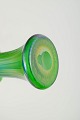 Elegant vase i mundblæst glas med bølgende, udadbøjet munding og slank, svungen korpus. Overfladen har kraftig iriserende effekt i klare grønne toner med blålige nuancer ved foden. Den fligede rand og den levende farvevirkning er karakteristisk for Loetz’ produktion i 1920’erne, hvor dekorative former og metallisk glans fortsatte som en væsentlig del af æstetikken.