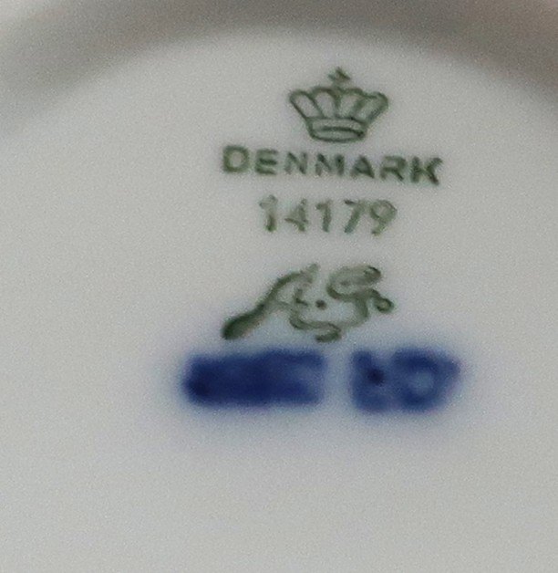 Royal Copenhagen. Musselmalet, helblonde. Stor fru