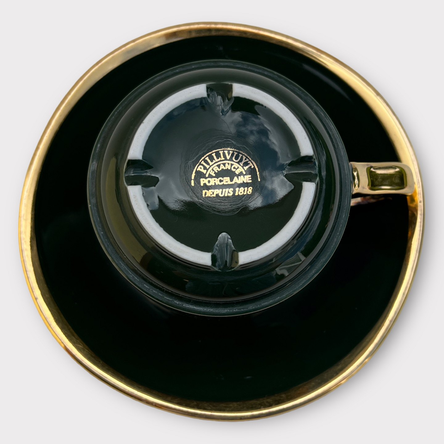 Pillivuyt, Green Bistro with gold rim, Teacup, 8.5cm in diameter, 7cm high *Nice condition*