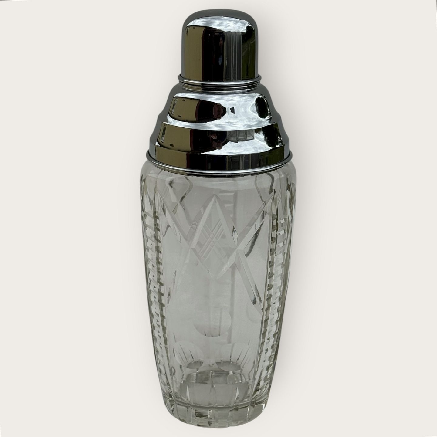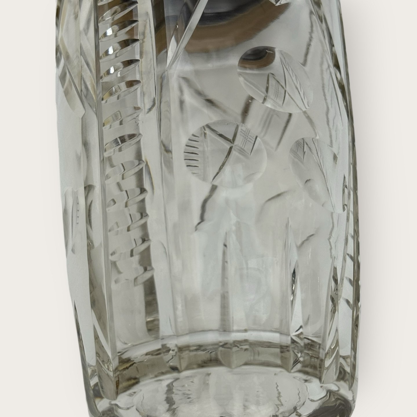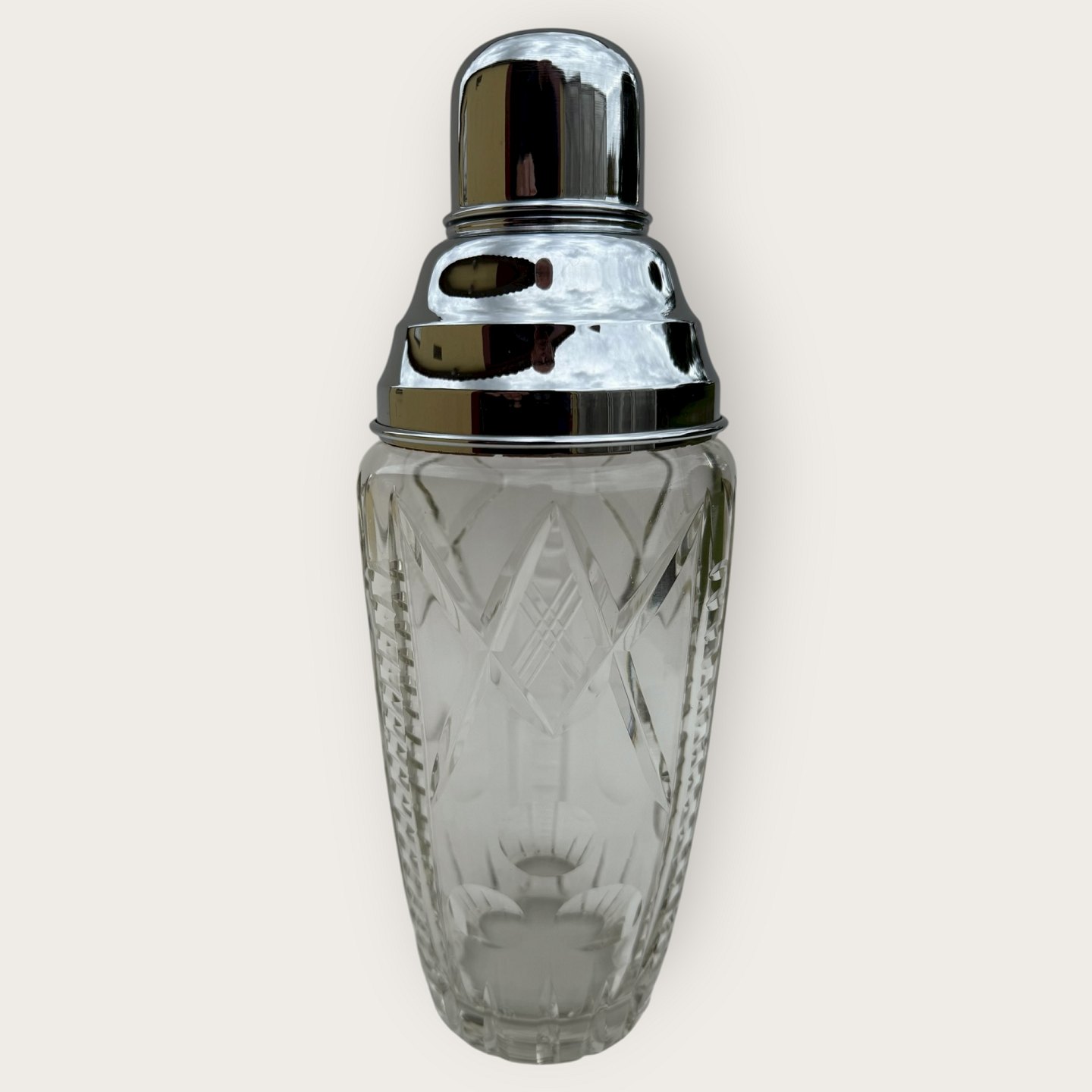Ældre cocktail shaker i tykt glas og med mange slibninger, højde 25cm, flot stand