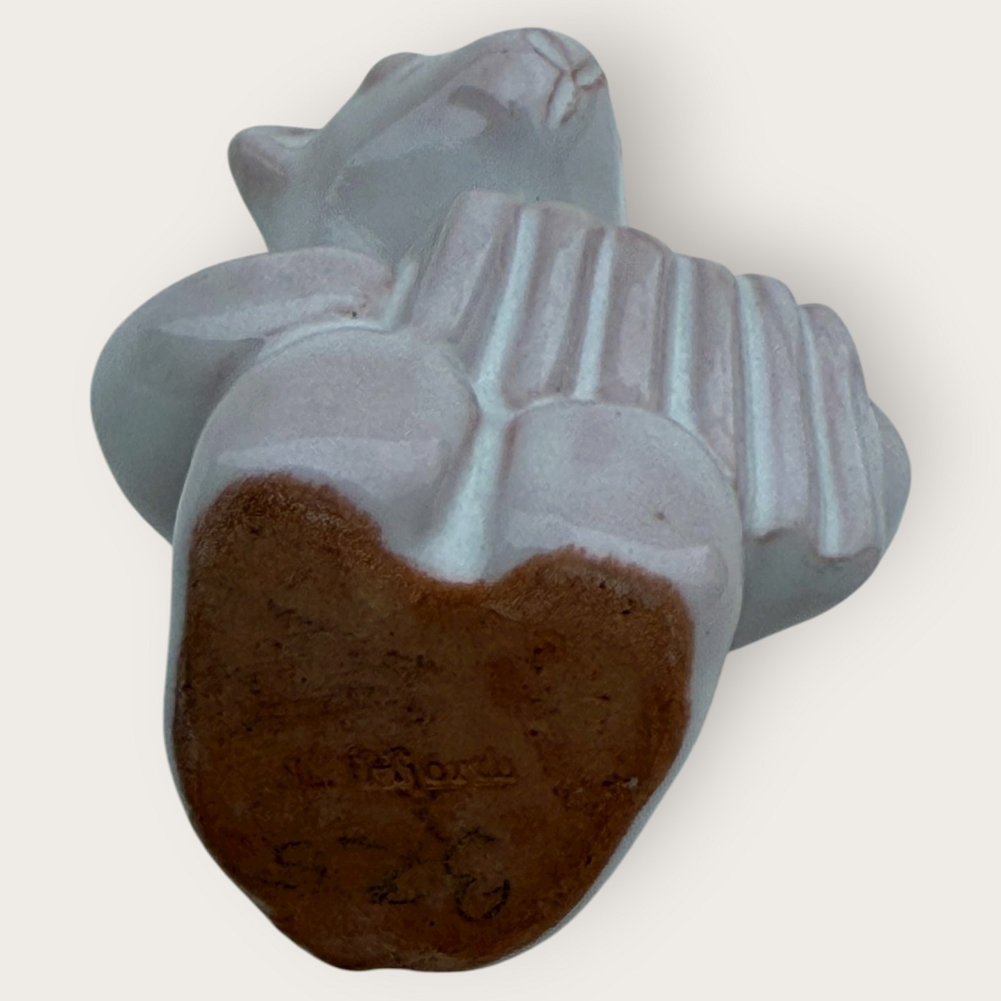 Bornholmsk keramik, Hjorth, Bjørne orkester, Harmonika, bjørn med hvid glasur, ca. 6x5cm *Pæn stand*