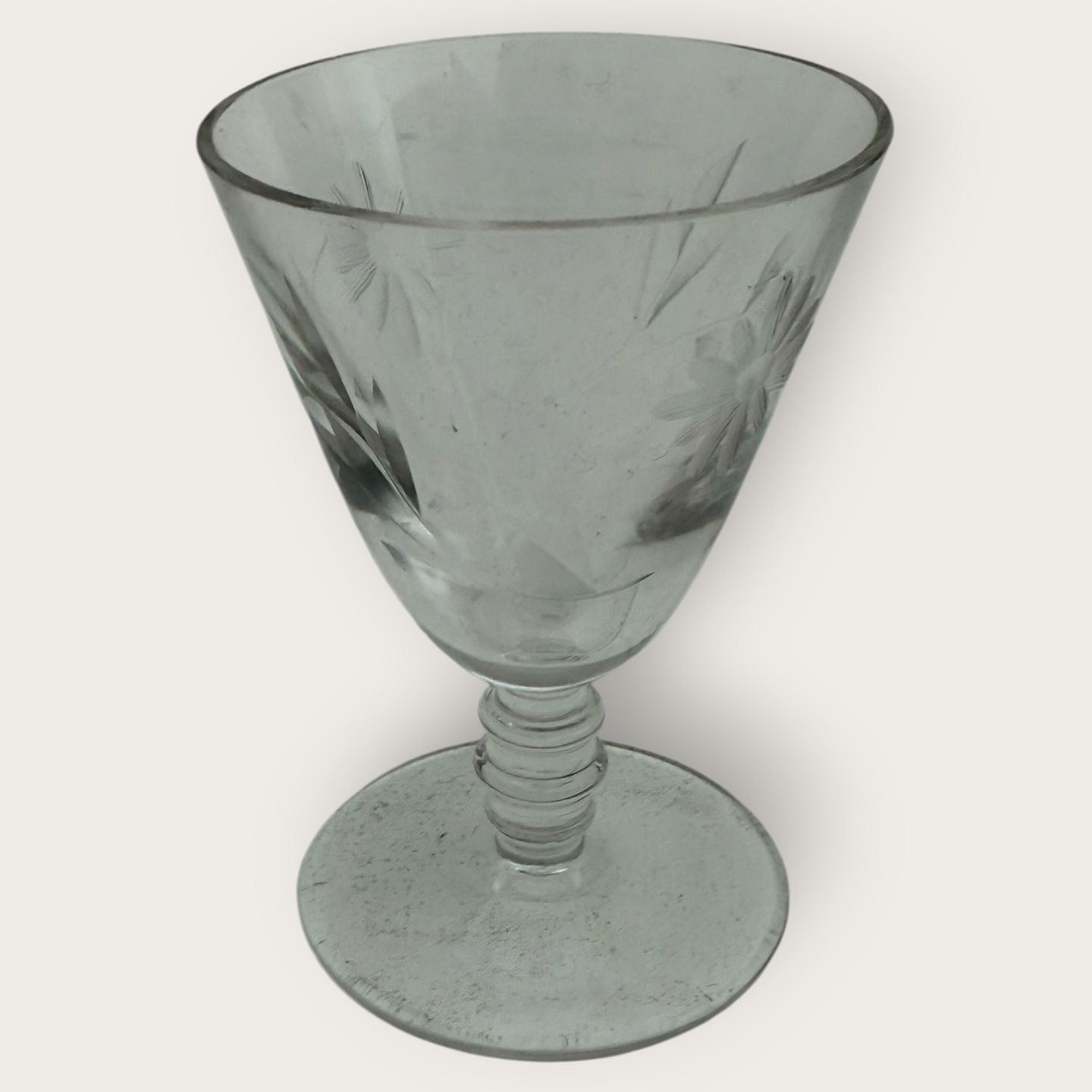 Portvinsglas med blomsterslibninger