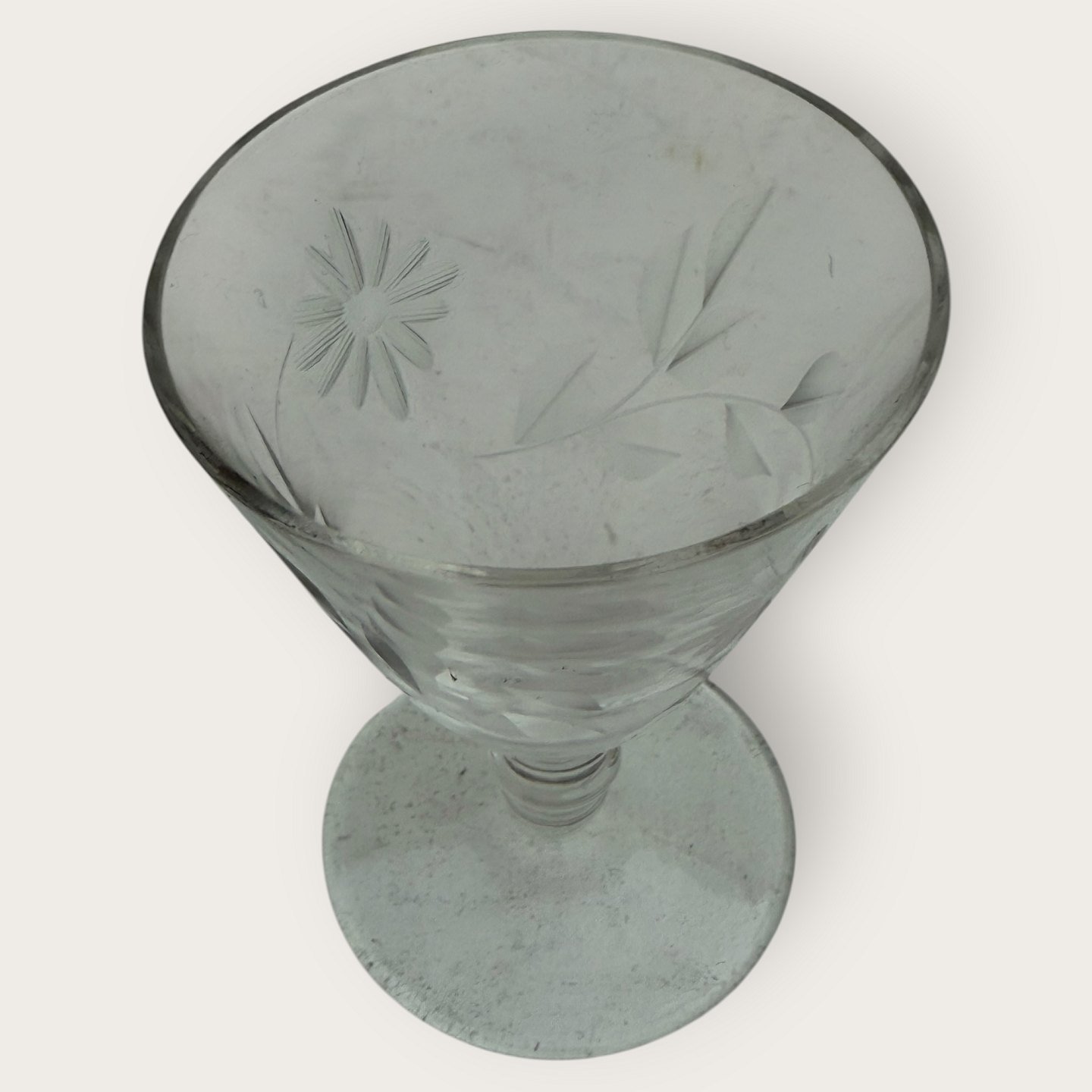 Hvidvins glas med blomsterslibninger *50kr