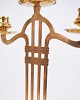 Set of two tall three-armed brass candlesticks from the 1920s in Art Nouveau style.