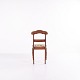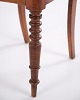 Spisebords- eller entréstol i sen Empire stil, udført i mahogni og polstret med blomstret stof. Klassisk design med tidstypiske linjer og let buet ryg. En dekorativ stol, der egner sig til både spiseområde og entré.