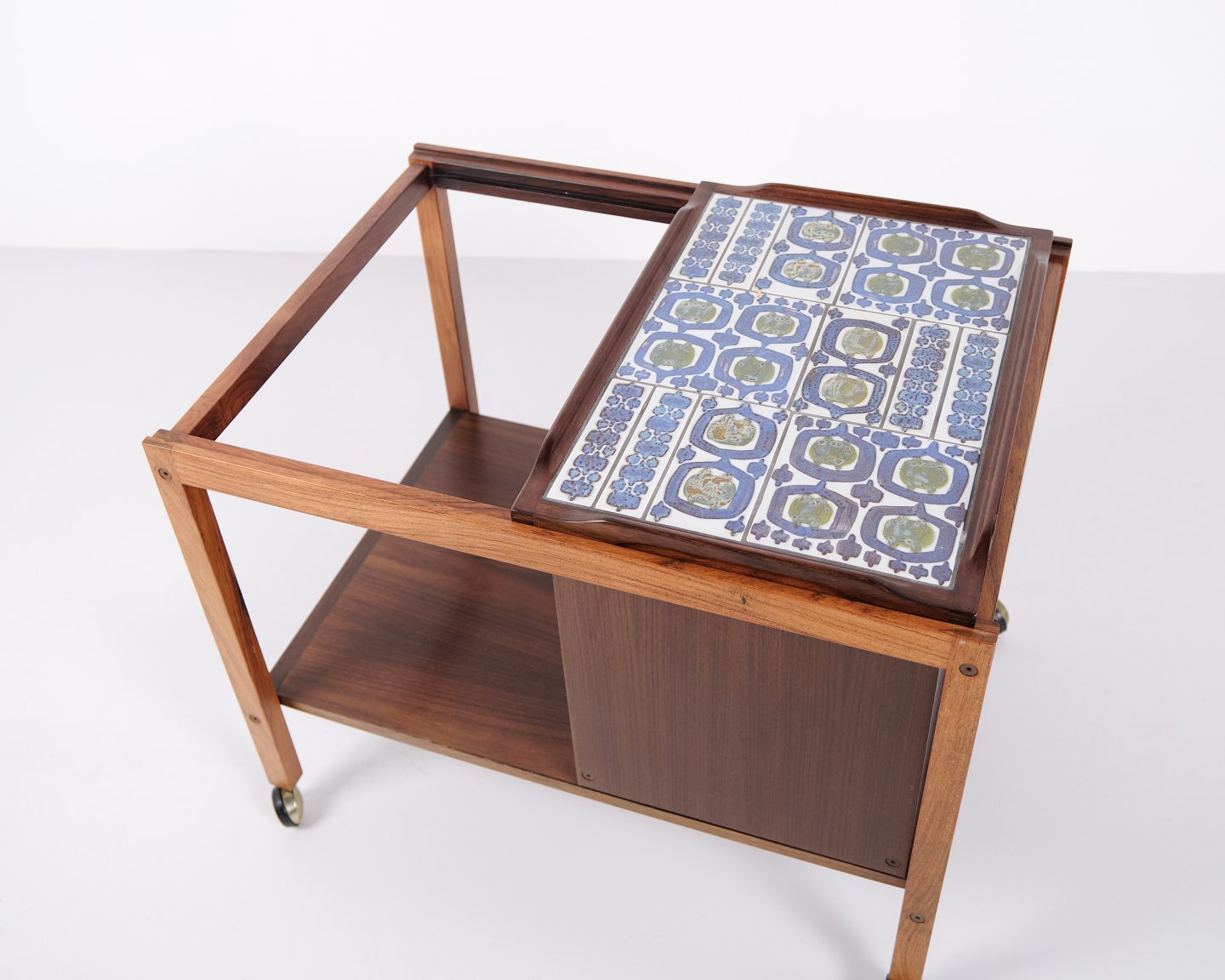 Bar cart in rosewood designed by Severin Hansen with tiles from Royal Copenhagen. Classic Danish design from the 1960s with an elegant appearance.