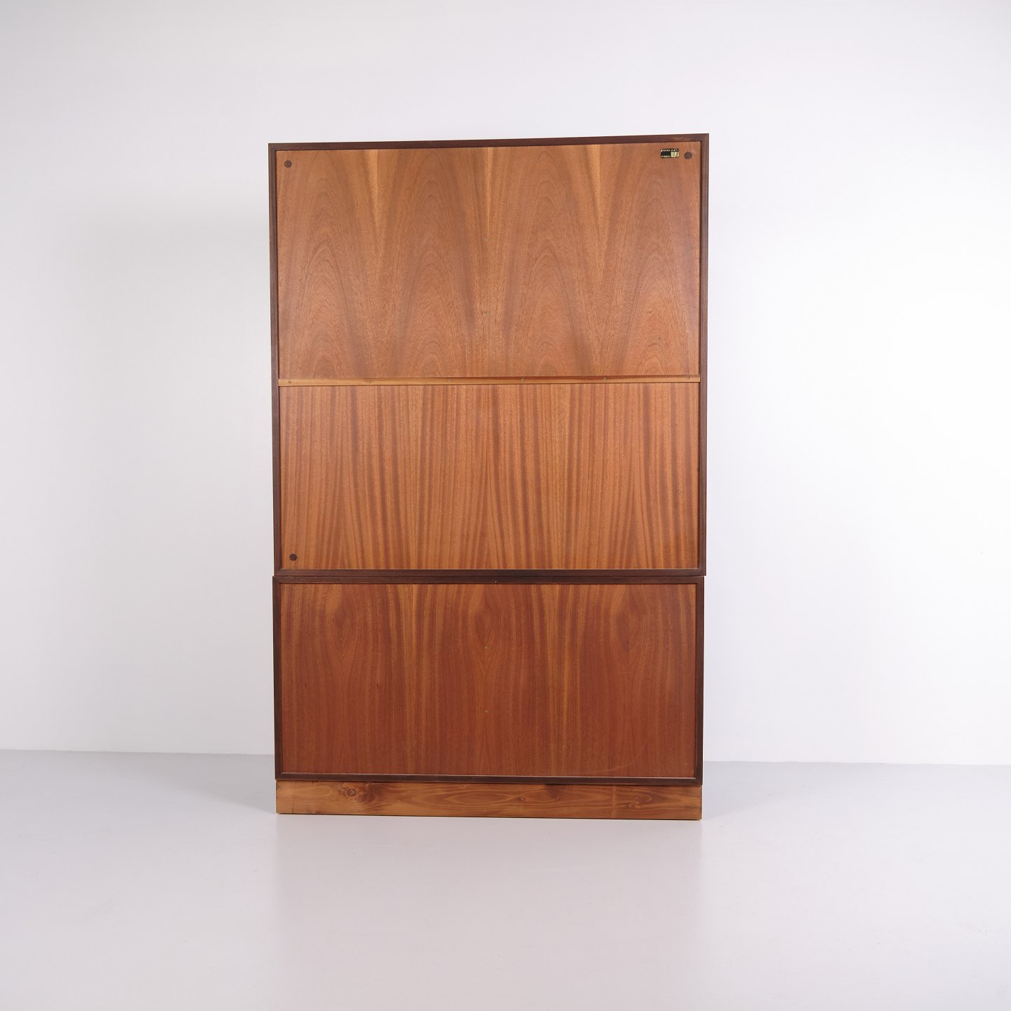 Regal, Modell 5, entworfen von Gunni Omann und hergestellt bei Poul Hundevad in Dänemark in den 1960er Jahren. Das Möbel ist aus Palisander gefertigt und spiegelt die klaren Linien und die funktionale Gestaltung wider, die typisch für das dänische Möbeldesign dieser Zeit sind.
