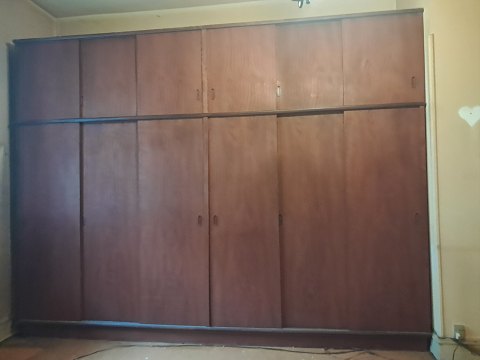 6 Dørs-klædeskab i fineret teaktræ, fra 1960erne.