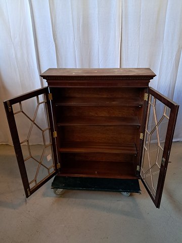 Vitrineskab i fineret mahogni, fra 1980erne.