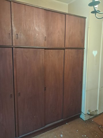 6 Dørs-klædeskab i fineret teaktræ, fra 1960erne.