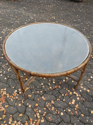 Bambusbord med glasplade, fra 1970erne.